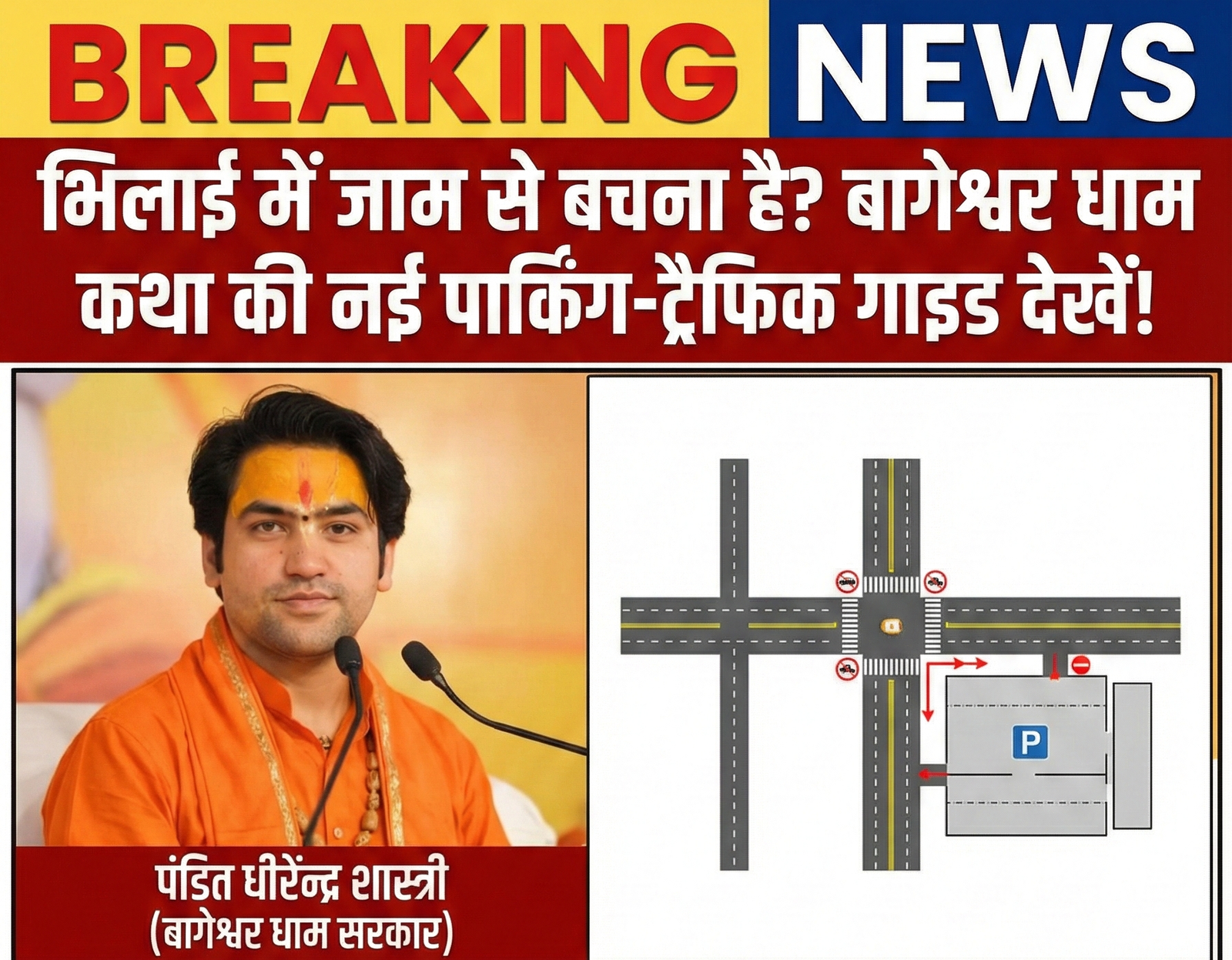 Read MoreThe traffic and parking arrangements for the Bageshwar Dham Sarkar Hanumant Katha starting today in Bhilai